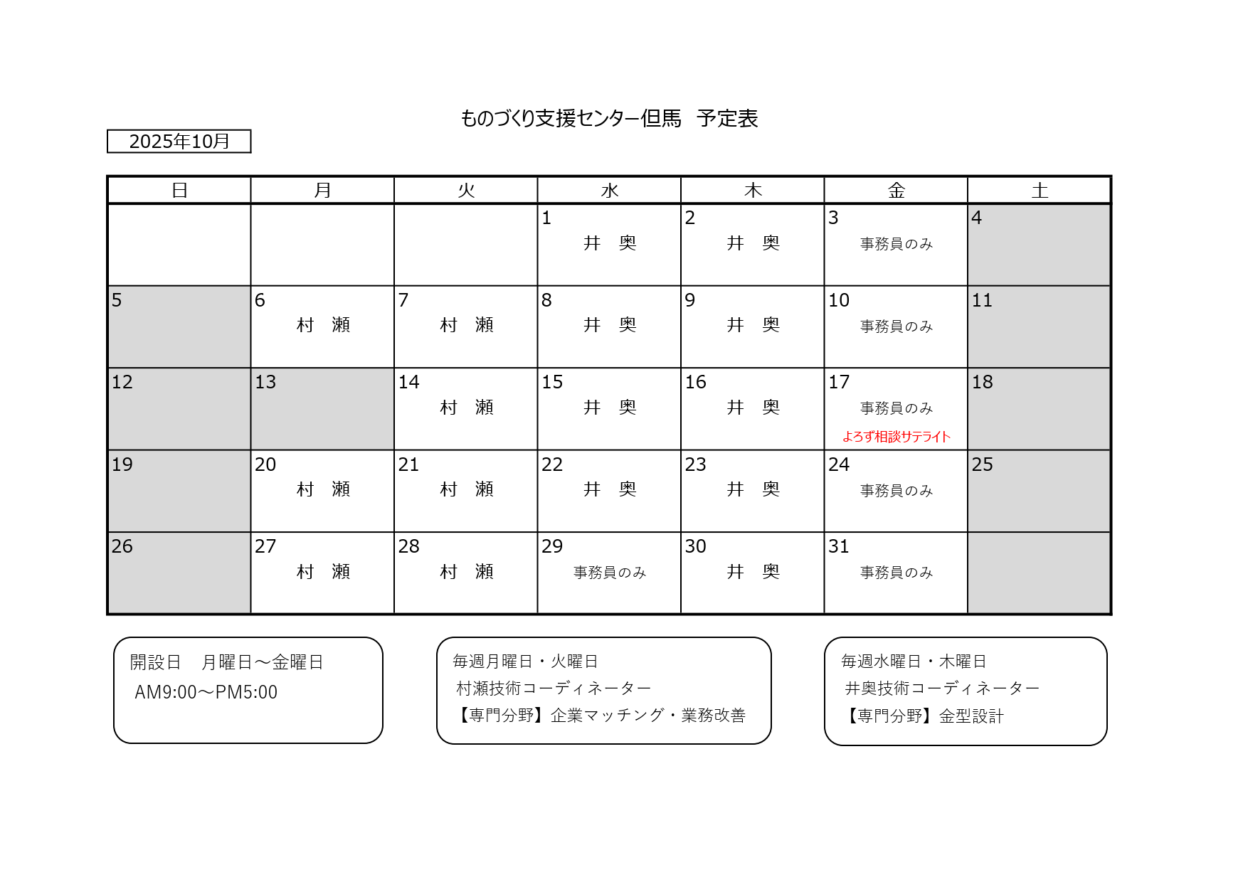 [技術相談、機器利用等の問い合わせ ] 毎週 月〜金 9:00〜17:00