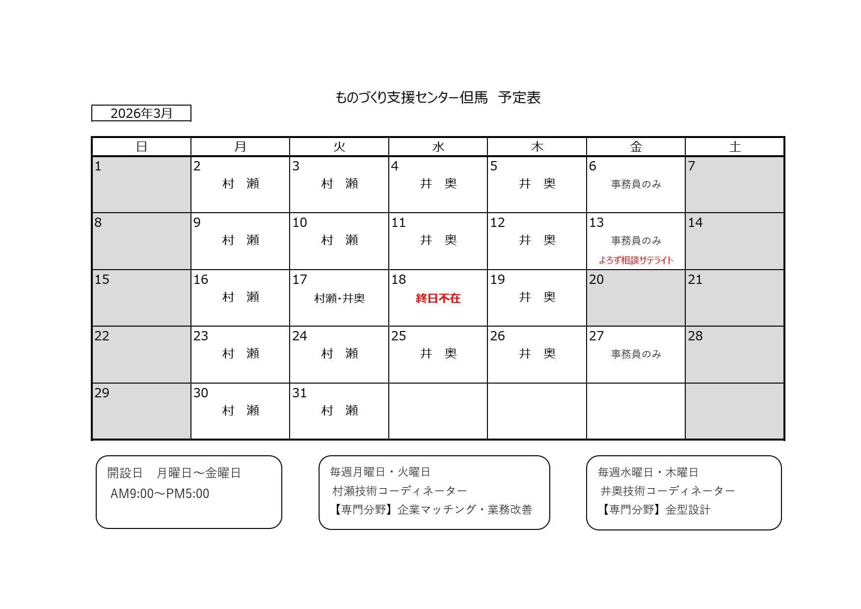 [担当日]毎週 月・火曜